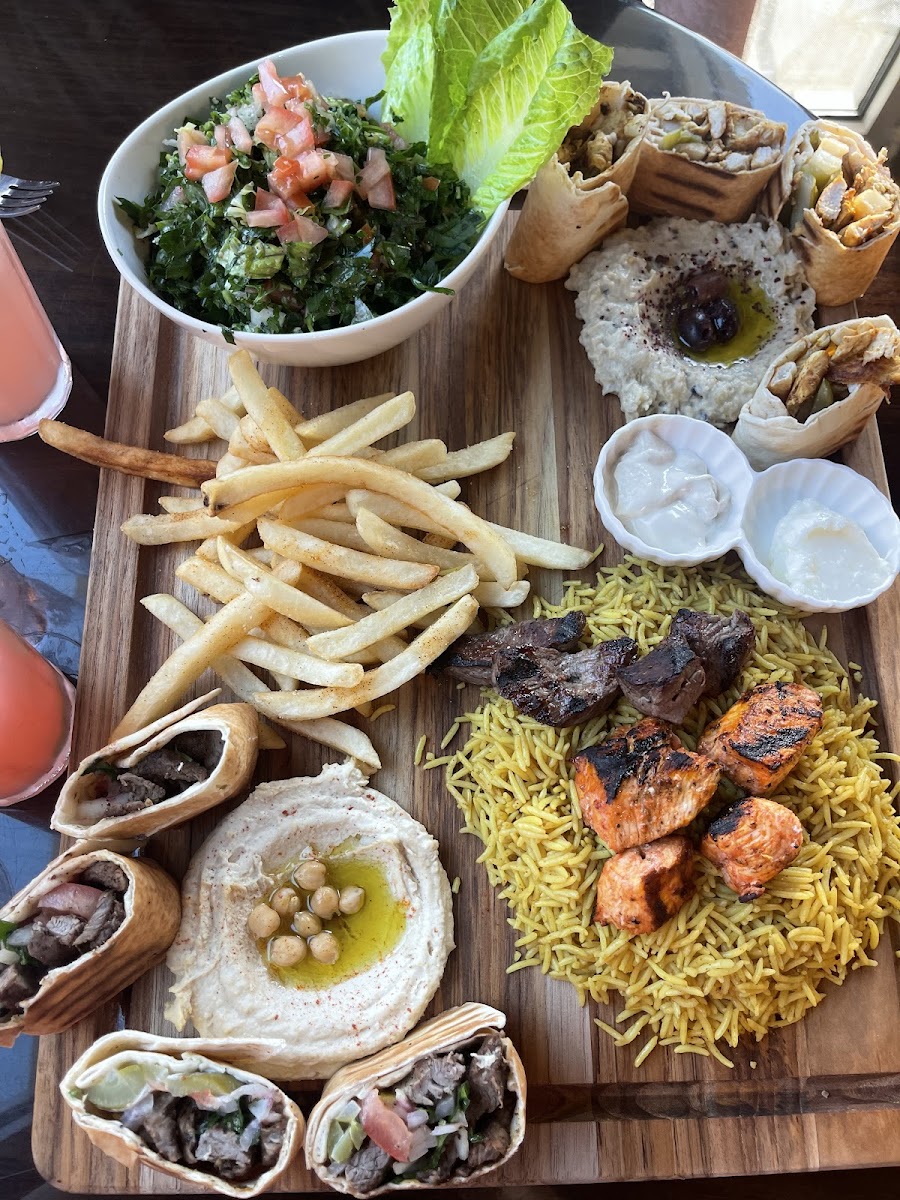 The menu at Beirut Bites is a celebration of bold flavors and quality ingredients, offering something for everyone. For those who love to start their meal with a burst of freshness, the mezze platters are a must-try. With options like creamy hummus, tangy tabbouleh, and crispy falafel, these small plates are perfect for sharing. The hummus, in particular, is a standout-smooth, rich, and just the right amount of garlicky goodness. Pair it with a warm pita for a bite of pure heaven.