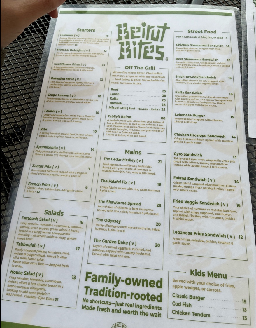 Beirut Bites- At The Marketplace Flats Menu offers a delightful journey through the rich flavors of Lebanese cuisine. Nestled in the heart of University Place at 3555 Market Pl W #6, this cozy spot is perfect for anyone craving fresh, authentic dishes. Whether you're in the mood for a savory shawarma wrap, a light mezze platter, or a hearty kebab, there’s something for every taste. The menu highlights traditional favorites alongside modern twists, all crafted with high-quality ingredients to give you a taste of Beirut's vibrant food culture. It’s a place where fresh herbs, bold spices, and time-honored recipes come together to make every bite memorable. From the first bite to the last, you’ll feel like you’re enjoying a meal with friends in the heart of Lebanon itself.